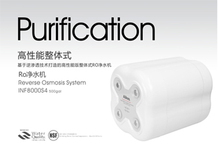 INF8000S4型凈水機是基于逆滲透技術(shù)打造的高性能版平臺,使用分離斷電的開啟方式,便于更換專屬的快插式過濾單元……