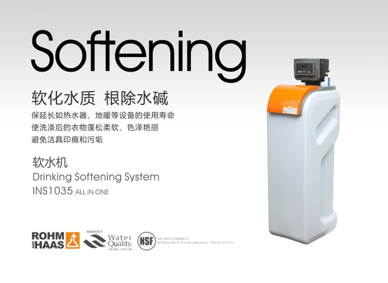 軟水機(jī)是將軟水控制器與玻璃鋼壓力桶結(jié)合,通過離子交換樹脂去除水中的鈣、鎂離子(即水堿),降低水質(zhì)硬度的水處理設(shè)備。軟化水屬于生活用水,可以延長如熱水器、地暖等設(shè)備的使用壽命。使洗滌后的衣物蓬松柔軟。避免潔具印痕和污垢。